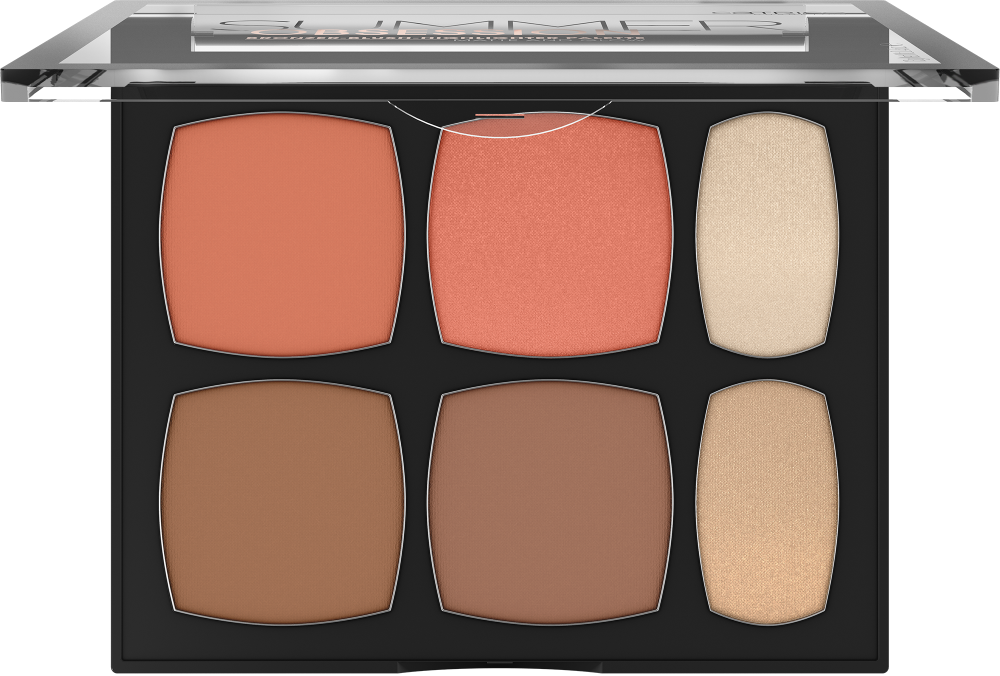 درجات الألوان مع البرونزر وأحمر الخدود ومستحضر الإضاءة لبشرة صيفية طبيعية باليت بودرة بلش برونزية “سمر اوبسيشن” مت أند غلو - باليت للاضائة، والبرونزر، ودرجتي بلش أكدي على ثنايا الوجه وضعي الظلال لبشرة طبيعية برونزية!