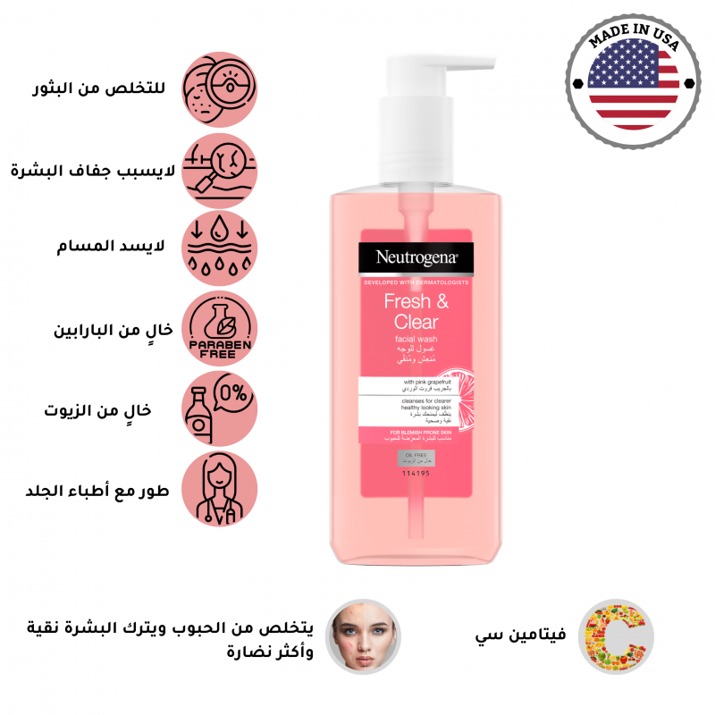 ينظف بعمق للمساعدة في التخلص من البقع والرؤوس السوداء مع تقنية ميكروكلير القوية ينقي البشرة دون الإفراط في الجفاف موجة من الفاكهة الوردية ترفع الحواس تم تطويره بواسطة أطباء الأمراض الجلدية. المكونات: ، أكوا، كبريتات لوريث الصوديوم، بروبيلين جليكول، لوريل جلوكوزيد، لوروامفوسيتات الصوديوم، كوكاميدوبروبيل بيتين، PEG-120 ميثيل جلوكوز ديوليت، حمض الساليسيليك، كلوريد البنزالكونيوم، C12-15-12ألكيل لاكتات وكوكاميدوبروبيل بي جي بي جي كلوريد ديمونيوم فوسفات ومستخلص فاكهة الحمضيات جرانديس وسلفونات بنزوتريازوليل بوتيل فينول وكحول دينات.