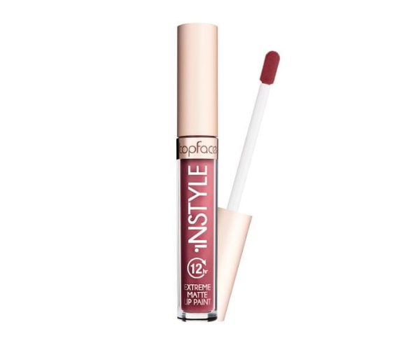 احمر شفاه انستايل اكستريم مطفي من توب فيس: احمر شفاه سائل يمنح الشفاه مظهر مخملي غير لامع. يعطي لون كثيف وثابت يبقى لمدة طويلة دون الشعور بوجوده على الشفاه. غني بفيتامين إي وزيت المكاديميا ليحمي ويعالج شفتيك من الجفاف ويحافظ على مظهرها الصحي والممتلئ طوال اليوم. يحتوي على تركيبة مميزة تدوم لأكثر من 12 ساعة. مفحوصه من قبل اطباءالجلديه