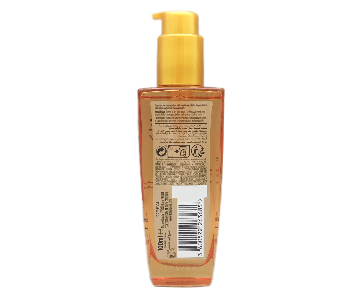 يتميز هذا السيروم من لوريال باريس بأنه يحتوي على تركيبة علاجية للشعر تعمل على ترطيبه وتغذيته لتحويل الشعر الجاف إلى شعر ناعم ولامع. كما يتميز بأنه غني بزيوت الزهور، لشعر ناعم ولامع. الإرشادات: ضعي من 2 إلى 3 مضخات على اليد ثم: 1. يمكنك أن تضعيه قبل الشامبو والبلسم. 2. يمكنك أن تضعيه على الشعر الجاف قبل تجفيفه بالاستشوار لحماية الشعر. 3. يمكنك أن تضعيه طوال اليوم للتغذية المستمرة واللمعان. للحصول على نتائج أفضل، استخدميه مع الشامبو والبلسم.